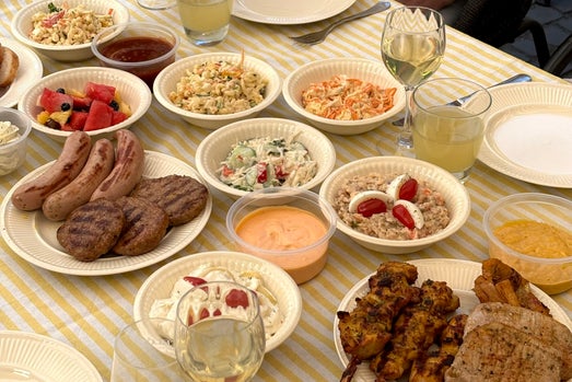 - 4 stukken BBQ vlees (BBQ worst, hamburger, kipspies, hamlap)